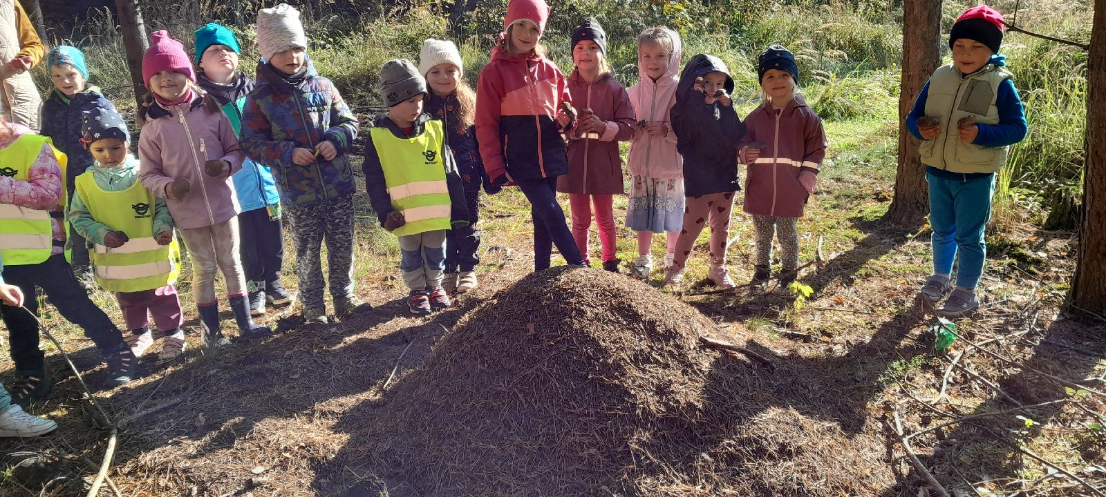 Ve středu jsme s dětmi prožili kouzelný projektový den v lese. Už při prvních krocích nás přivítalo šustění listí pod nohama a veselý zpěv ptáků, který se nesl mezi stromy. Děti chvíli ztišily hlásky, aby mohly poslouchat, kdo to vlastně v korunách stromů koncertuje.