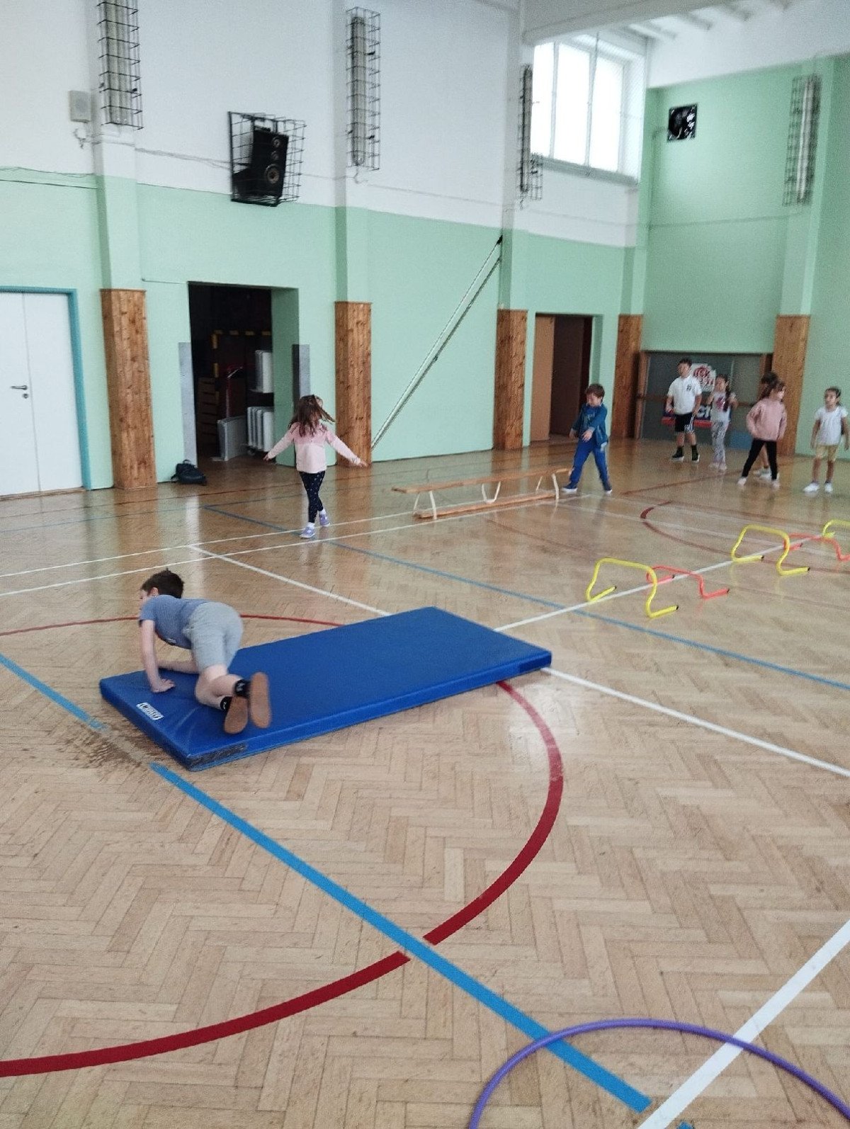 Na závěr nás opět čekala paní učitelka Romová a hodina tělesné výchovy v tělocvičně. Sportovní část dopoledne si děti užily ze všeho nejvíce.