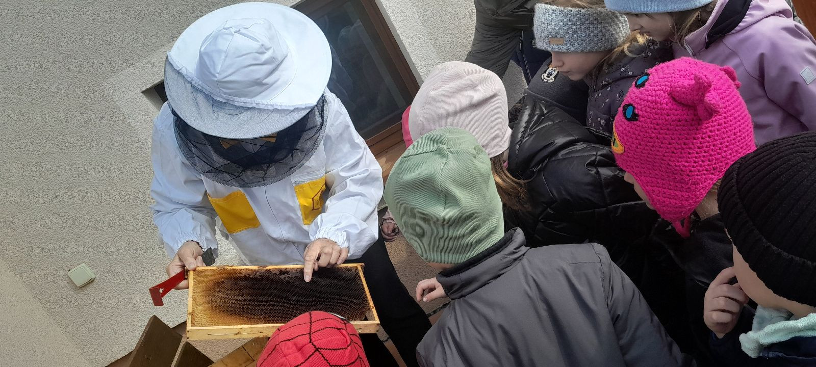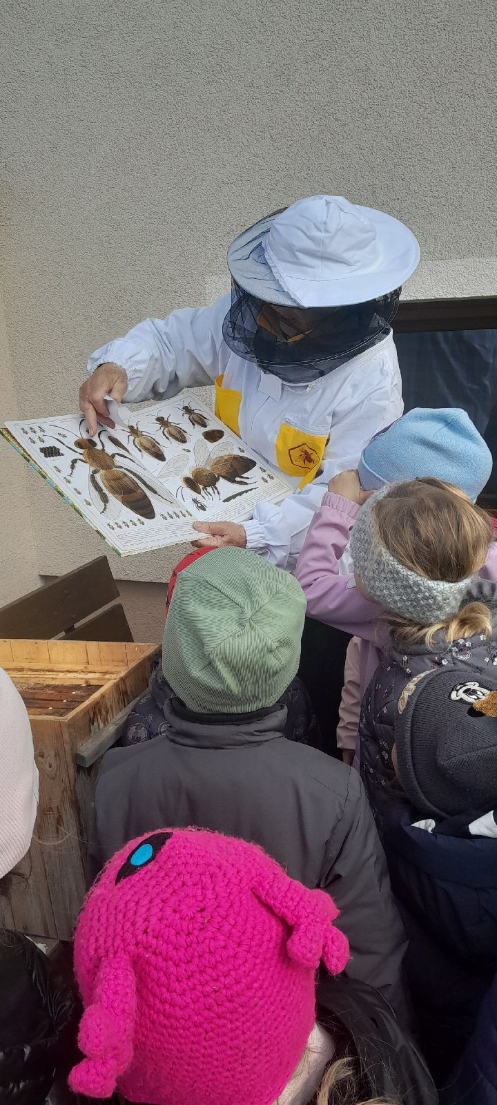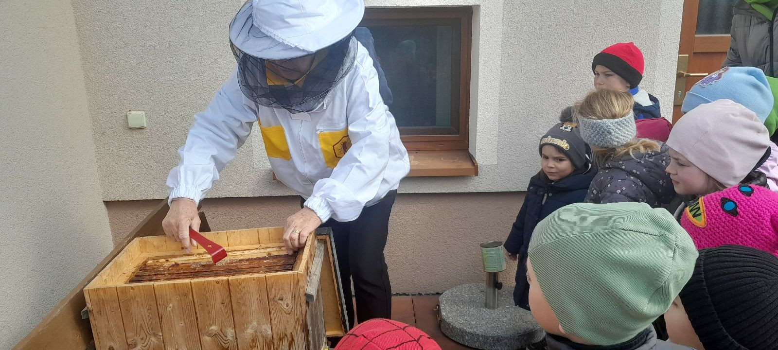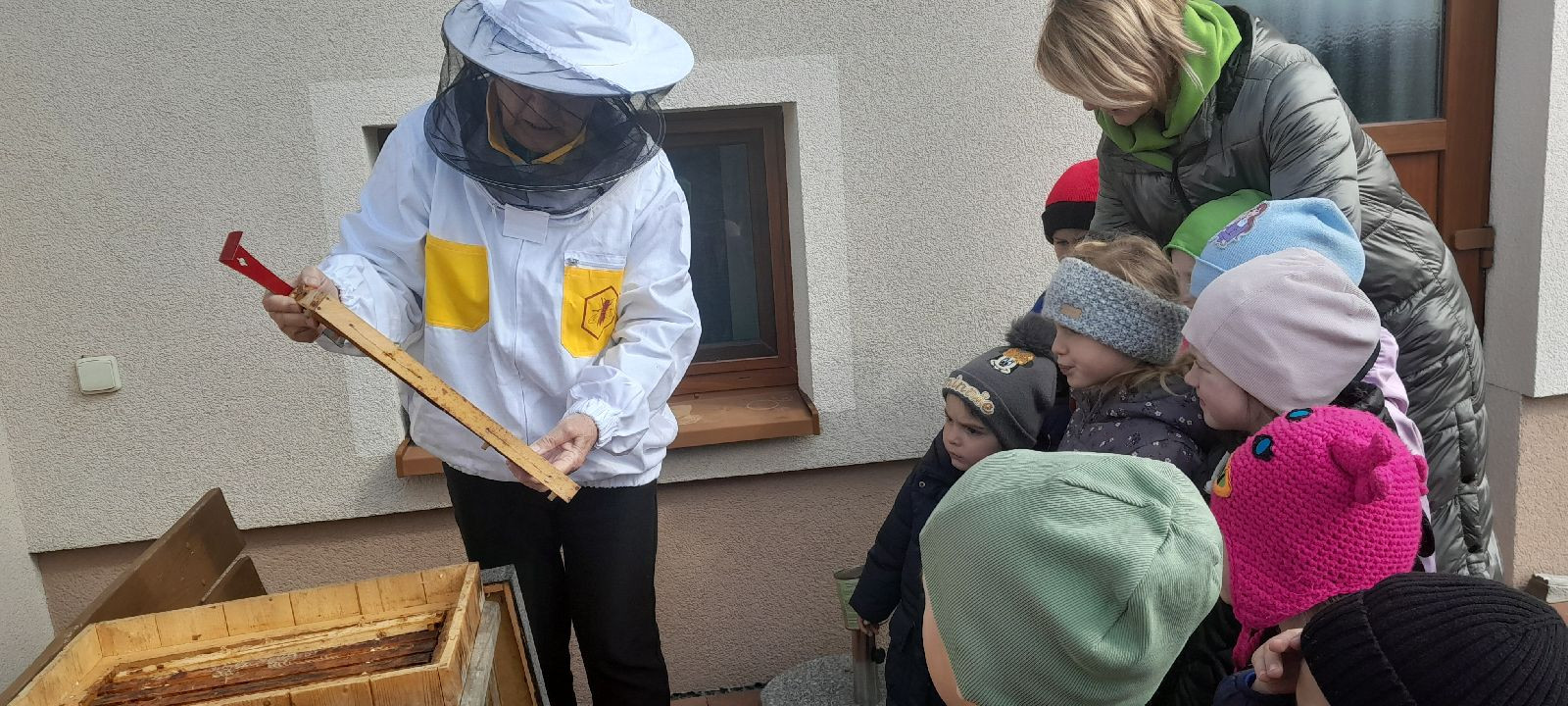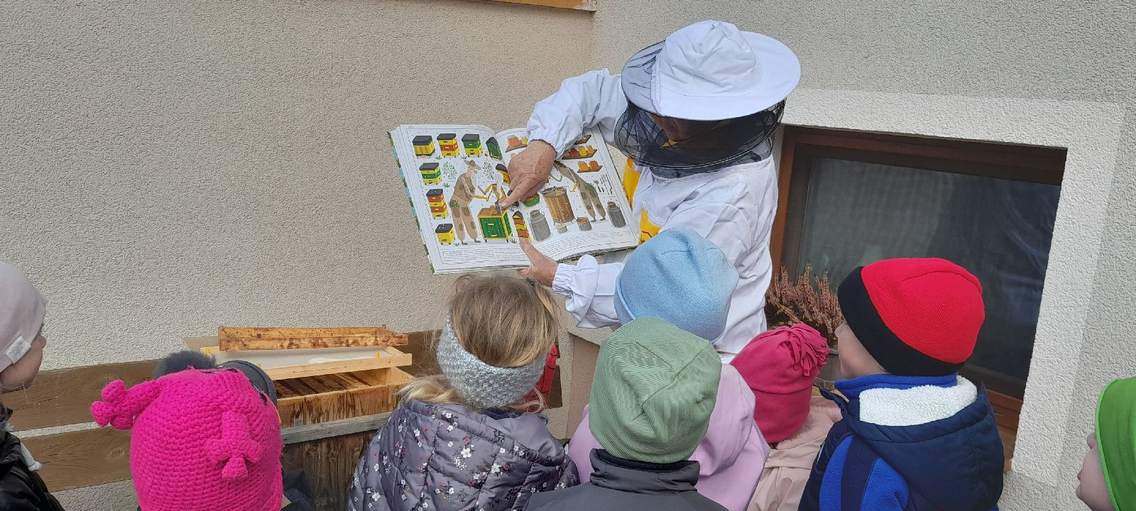 V pátek 20. března jsme s dětmi vyrazili na milou návštěvu k našim sousedům – paní Vokáčové a jejímu manželovi, abychom se podívali na jejich včeličky. Paní Vokáčová nám ukázala úl a plástve a trpělivě vysvětlovala, jak včelky žijí, spolupracují a co všechno dělají, aby získaly med a staraly se o svůj úl. Díky obrázkům v encyklopedii jsme si mohli představit, jak včelky sbírají pyl, staví plástve, krmí larvy a jak jejich každodenní práce prospívá celé přírodě.